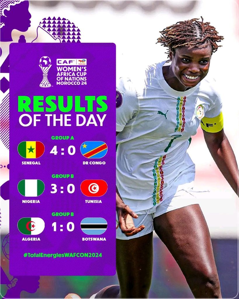 Dans le groupe B, le Nigeria a laminé la Tunisie sur la note de trois buts a rien, l’Algérie a eu raison du Botswana sur la plus petite des marques, un but à zéro, tandis que dans le groupe C pour clore, les championnes d’Afrique, les banyanya banyanya d’Afrique du Sud ont battu les blacks queens du Ghana pas le score de deux buts à brosse et le Mali s’est défait de la Tanzanie un but à zéro.