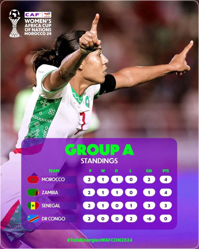 Au classement, le Maroc et la Zambie sont en tête avec quatre points, le Sénégal avec trois points occupe la troisième position, la RDC zéro point est bon dernier.