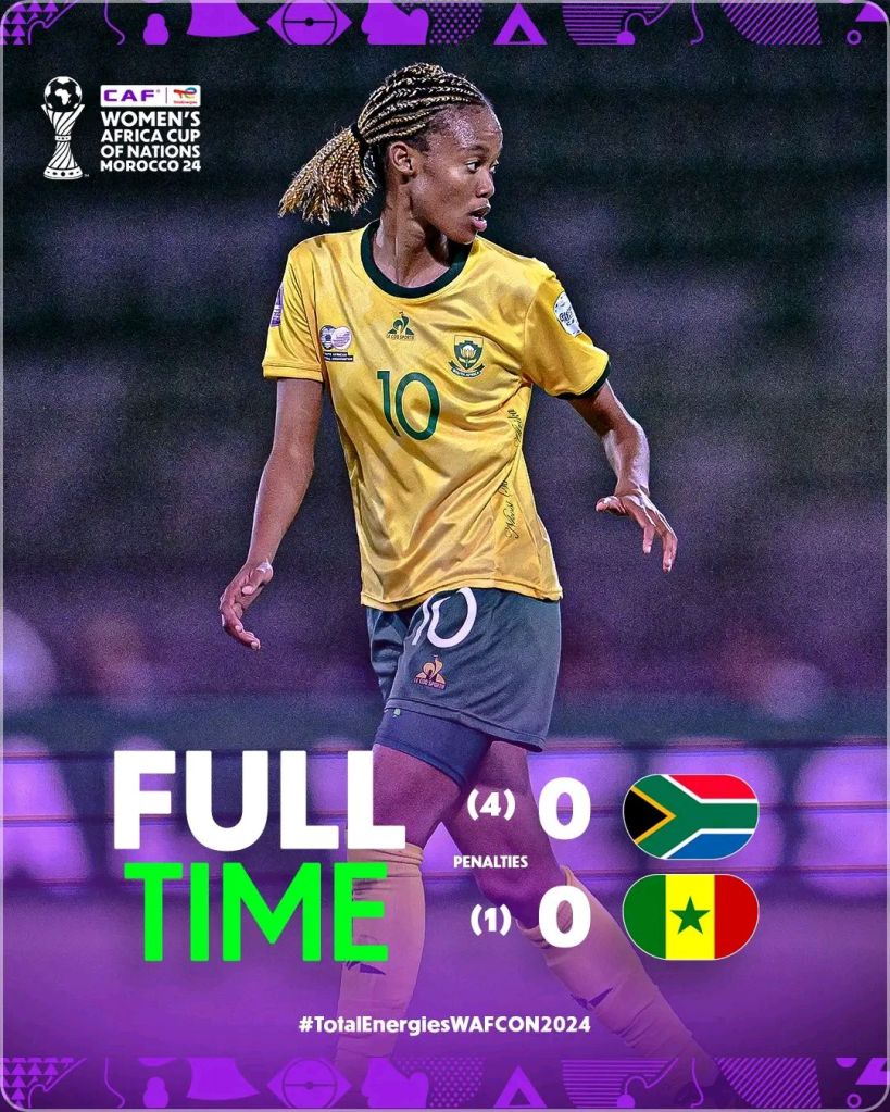 Comme lors du premier match de la soirée entre le Ghana et l’Algérie, l’Afrique du sud a attendu jusqu’aux tirs au but pour se défaire du Sénégal, l’expérience a joué, Andile DLAMINI sur ses gants a sorti les tirs de Nguenar NDIAYE et Méta KANDE; derrière les sud-africaines ont mis les quatres pour signer un 4-1 au T.A.B.